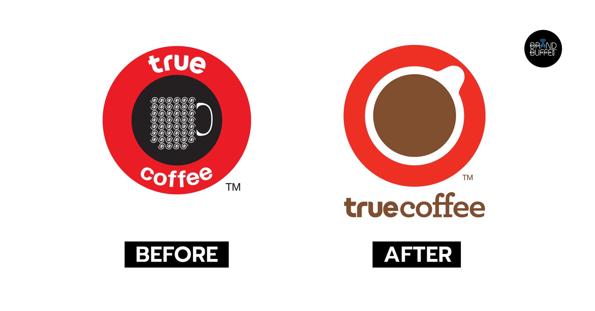 การรีแบรนด์ครั้งนี้ TrueCoffee ได้ดีไซน์โลโก้ใหม่ จากโลโก้เดิมเป็นรูปแก้วกาแฟด้านข้าง สื่อถึงดิจิทัล เนื่องจากกลุ่มทรูต้องการให้ร้านกาแฟเติมเต็มพาร์ทไลฟ์สไตล์ และทำให้เทคโนโลยี เป็นสิ่งจับต้องได้ง่าย