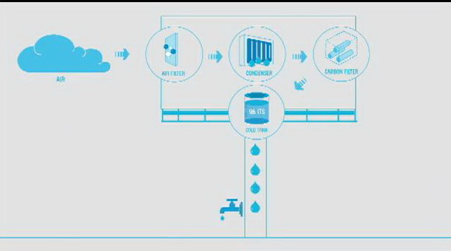 ด้านหลังบิลบอร์ดถูกติดด้วยเครื่องผลิตน้ำจากความชื้นในบรรยากาศที่พัดมากระทบบิลบอร์ด ซึ่งจะถูกสะสมเรื่อยๆและผ่านการรีเวอร์ออสโมซิสกลายเป็นน้ำที่สามารถดื่มได้ เครื่องผลิตน้ำ 5 เครื่อง แต่ละเครื่องสามารถเก็บน้ำได้ 20 ลิตร หลังจากเปิดให้ใช้บริการ 3 เดือน ผลิตน้ำบริสุทธ์ได้กว่า 9,450 ลิตร