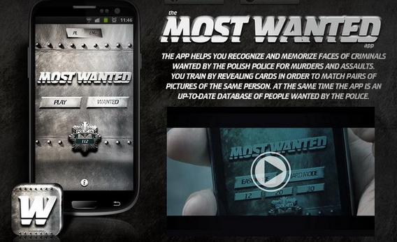 สำนักงานตำรวจประเทศโปแลนด์ ร่วมกับ DDB Warsaw จัดทำแอพพลิเคชั่น Most Wanted แอพฯที่ช่วยทำให้จดจำหน้าใบหน้าของฆาตกรหรืออาญชกรที่หลบหนีอยู่ ณ ปัจจุบัน เนื่องจากแอพฯนี้จะเอาหน้าตาฆาตรกรมาอยู่ในเกมส์จับคู่ เพื่อให้ผู้คนได้จดจำหน้าบุคคลเหล่านั้นและแจ้งจับได้ทันที ทั้งนี้หน้าตาฆาตกรจะถูกอัพเดทมาเรื่อยๆ พร้อมกับประวัติตามฐานข้อมูลของทางสำนักงานตำรวจฯ