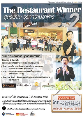 • Restaurant/Cafe Management and Maketing Strategies เจาะลึกกลยุทธ์ในการบริหารจัดการจากผู้มากประสบการณ์ในแวดวงธุรกิจร้านอาหาร จากผู้บริหาร Santa Fe’ Steak รวมไปถึงกลยุทธ์การตลาดเด็ดๆที่งัดมาท้าทายคู่แข่งอย่างไม่มีกั๊ก