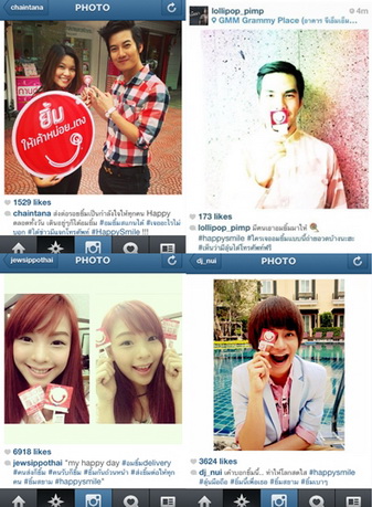 ปรากฎการณ์สร้างรอยยิ้มได้รับความร่วมมือและประสบความสำเร็จเป็นอย่างดีเห็นได้จาก #happysmile ที่ตอนนี้มีการถ่ายรูปและแชร์รอยยิ้มผ่านโซเชียลเน็ตเวิร์คทั้งใน Facebook Instagram และ Twitter เข้ามากันอย่างล้นหลามจากทั้งเซเลปและเน็ตไอดอล เช่น รอยยิ้มน่ารักๆ จาก น้องแอนนี่ หญิงแย้ โฟร์ น้องจิว หรือ รอยยิ้มแบบกวนๆ จาก บี้ The ska, เผือก พงศกร, ดีเจนุ้ย รวมไปถึงยิ้มหล่อๆจากหนุ่มเชน