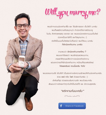 ทันทีที่เธอเปิดหน้าเว็บไซต์ขึ้นมาเธอก็จะพบภาพแฟนหนุ่มพร้อมแหวนเพชรเพื่อขอเธอแต่งงานกับคำขอแต่งงานที่ว่า”Will you marry me ?”