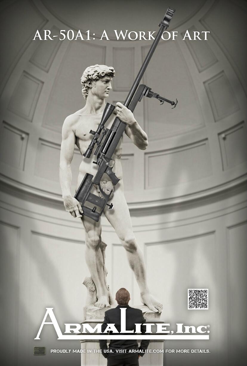 บริษัทผู้ผลิตปืนและอาวุธของประเทศสหรัฐอเมริกาชื่อว่า ArmaLite กำลังถูกชาวอิตาลีไม่พอใจและวิจารณ์อย่างนักใน Social Media ของ ArmaLite เนื่องจาก ArmaLite ทำ Print Ad ออกมาชิ้นนึง ที่เอา David (Michaelangelo) รูปปั้นชื่อดังของประเทศอิตาลี มาทำท่าถือปืนไรเฟิล AR-50A1 พร้อมกับ tagline ว่า “A Work of Art.” ซึ่งทางการของอิตาลีกล่าวว่า เป็นการกระทำที่ผิดกฏหมายละเมิดลิขสิทธิ์ของประเทศอิตาลี หากจะใช้รูป David ต้องได้รับการอนุญาติเสียก่อน