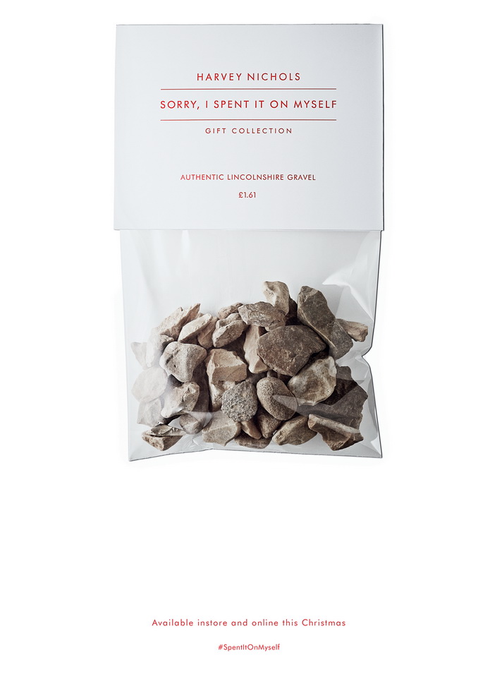 งานปริ้นท์ชุดนี้ เป็นส่วนหนึ่งของ Sorry I spent it on myself แคมเปญสำหรับนักช๊อปที่ต้องประหยัดเงินค่าของขวัญคริสต์มาส เพื่อเตรียมซื้อของให้ตัวเอง โดยคณะกรรมการลงความเห็นว่า มันเป็นงานที่เด่นด้วยไอเดีย และ strategy ตัวปรื้นท์เองไปผนวกอยู่กับแคมเปญใหญ่ได้ และก็ยังสามารถอยู่ stand alone ได้ด้วย Remi Babinet ประธานกรรมการตัดสิน กล่าวสรุปว่า “Fresh Simple Iconic and low Budget”