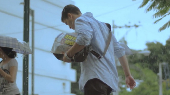โดยเปลี่ยนจากหนังสือพิมพ์ให้กลายเป็นร่มกันฝนไปซะเลย ด้วยการเคลือบแผ่นฟิลม์กันน้ำบนปกหน้าและปกหลังของหนังสือพิมพ์ ฝนตกเมื่อไหร่ไม่ต้องหาซื้อร่ม พุ่งไปหาแผงหนังสือพิมพ์ ใช้หนังสือพิมพ์กางแทนร่ม แถมยังอ่านต่อได้อีกด้วย