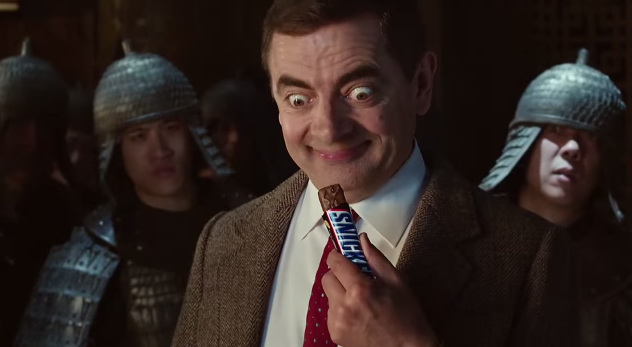 Snickers ช็อคโกแลตข้าวพอง ยังคงสโลแกน “ความหิวทำให้คุณไม่เป็นตัวของตัวเอง” แต่กลับมาครั้งนี้ดึงคาแรกเตอร์สุดโด่งอย่าง มิสเตอร์ บีน (โรวัน แอตคินสัน) ที่มีลักษณะรั่วๆฮาๆมาเป็นตัวแสดงนำในภาพยนตร์โฆษณาเรื่อง Kung Fu โดยเปรียบเทียบจอมยุทธที่กำลังหิว จะไม่เป็นตัวของตัวเอง ซึ่งจะมีนิสัยซุ่มซ่ามและรั่วๆเหมือนกับมิสเตอร์ บีน ทำให้ฝั่งศัตรูรู้ตัว