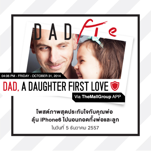 อีกไม่กี่วันก็จะถึงวันพ่อแห่งชาติ หลายแบรนด์ต่างเตรียมออกกิจกรรมหรือแคมเปญออกมาต้อนรับวันพิเศษนี้ หนึ่งในนั้นคือ เดอะมอลล์ กรุ๊ป ที่กำลังเตรียมตัวเข้าสู่ดิจิตอลอย่างเต็มตัว ได้เปิดตัวแคมเปญวันพ่อได้อินเทรนด์สุดๆ จับกระแสถ่ายรูปเซล์ฟฟี่ (Selfie) มาผนวกกับวันพ่อได้จี๊ดมากๆ ใช้ชื่อแคมเปญว่า Dadfie ถ่ายเซล์ฟฟี่กับพ่อง่ายๆก็ลุ้นรับรางวัลใหญ่