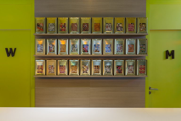 3. Thinking Café โซนพักผ่อน ผ่อนคลายยามเหนื่อยล้าจากการทำงาน ตลอดแนวยาวของพื้นที่ส่วนนี้วางเรียงรายด้วยขนมปี๊บที่เราคุ้นเคยชวนให้นึกถึงประสบการณ์ในอดีต เอาขนมที่ราคาไม่แพงมากมาใช้ แต่ใส่ไอเดียภายใต้แนวคิด Street Sweets in Designer Setting เข้าไปก็กลายเป็นการเพิ่มมูลค่า และงานนี้พร้อมชุดอุปกรณ์ทำข้าวโพดคั่ว และเครื่องทำสายไหม ทำหน้าที่เจ้าบ้านเชิญชวนให้ผู้ใช้งานมาสร้างกิจกรรมสนุกๆ มีปฏิสัมพันธ์ต่อพื้นที่ในช่วงต่างๆ ของวัน แถมท้ายด้วยการนำสีเขียวมาใช้เป็นองค์ประกอบเด่นในการกระตุ้นพลังความคิดสร้างสรรค์ด้วยเช่นกัน