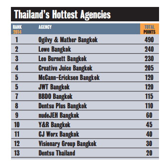 Thailand’s Hottest Agency 2014 (13 อันอับเอเย่นซี่โฆษณาของไทย ปี 2014)
