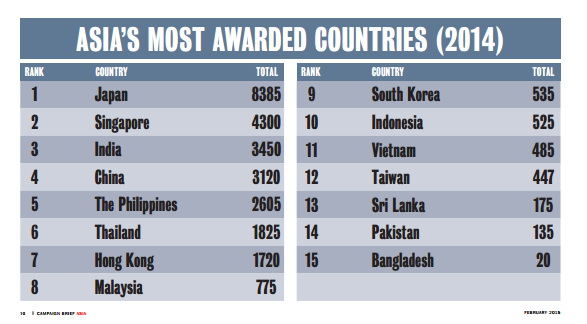 ASIA’S MOST AWARDED COUNTRIES 2014 (10 อันดับประเทศที่ได้รับรางวัลมากที่สุด)
