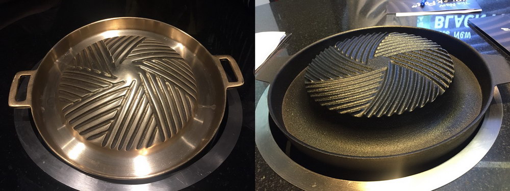 ล่าสุดทำตามคำเรียกร้องด้วย ชุดเตาและกระทะ Black จากกระทะโค้งนูนกลายเป็นกระทะแบนราบง่ายต่อการปิ้ง วัสดุใช้เหล็กหล่อ (cast iron) วัสดุนำความร้อนลุคหรูพรีเมี่ยม ทำให้ร้อนเร็วขึ้น ภายใน 3 นาที ด้วยระบบขดลวด 2 ขด ความร้อนเสมอกันทั้งฝั่งปิ้งและต้ม เนื้อที่กระทะใหญ่ขึ้น ปิ้งได้เยอะขึ้น และกระทะมีลักษณะพิเศษจะทำให้เนื้อความฉุ่มฉ่ำมากกว่าเดิมไม่แห้งจนเกินไป อีกทั้งร่องน้ำซุปมีขนาดใหญ่ขึ้นสามารถใช้ช้อนตักได้ตามคำเรียกร้องของผู้บริโภคจากดราม่าเมื่อต้นปี นอกจากนี้กระทะยังออกแบบให้เกิดรอยย่างบนเนื้อที่มีเป็นเอกลักษณ์ (Grilled Mark)