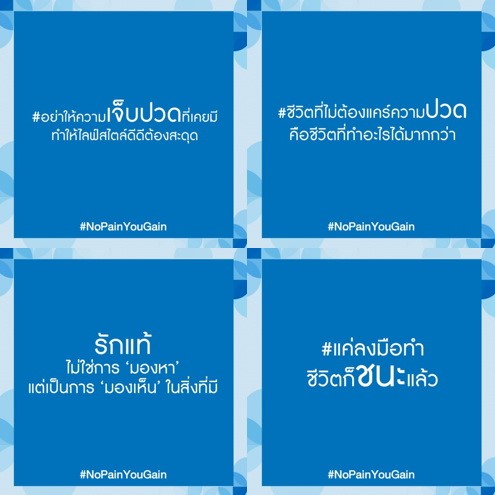 คำว่า “No Pain No Gain” ที่เราเคยได้ยินจนคุ้นเคย อาจจะหมายถึง การที่เราต้องเหนื่อยยากลงแรงกับอะไรสักอย่างเพื่อให้ได้มา แต่สำหรับแคมเปญ #NoPainYougain กลับหยิบยกเอาวลีฮิตเดียวกันมาสื่อสารเพื่อสร้างทัศนคติใหม่ๆ ให้เข้าใจว่า เราสามารถเติบโต และใช้ชีวิตอย่างเต็มที่ได้ในแบบที่เราต้องการโดยไม่ต้องมีเจ็บปวดมาเป็นอุปสรรค