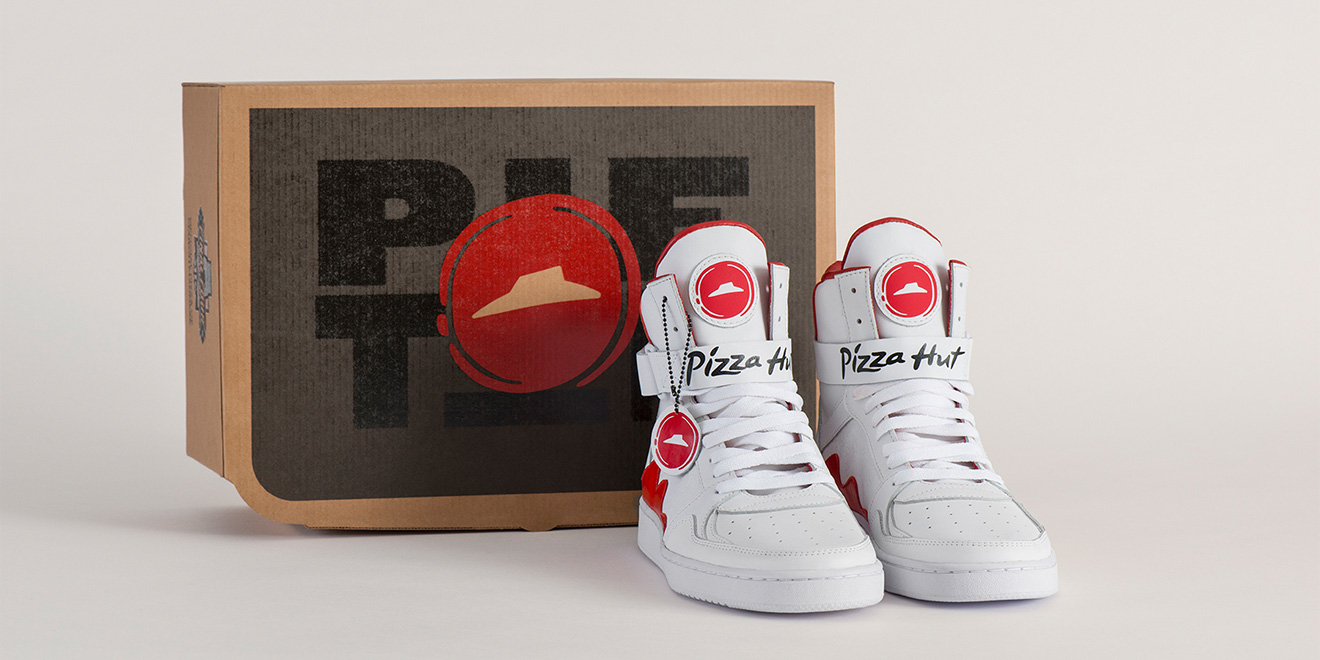 นวัตกรรมของตลาดพิซซ่าเมืองนอกนั้นแข่งขันกันอย่างดุเดือดเลือดพล่าน โดยหยิบจับเอาความสนุกของเทคโนโลยีมาทำให้ประสบการณ์การสั่งพิซซ่าของผู้บริโภคเป็นเรื่องง่ายที่สุดเท่าที่จะเป็นไปได้ บางเจ้าแค่พูดไม่กี่คำก็มีพิซซ่ามาส่งถึงบ้าน คราวนี้เป็นความน่าเชื่อเหลือของ Pizza Hut (พิซซ่าฮัท) ที่สร้างรองเท้ารุ่นพิเศษขึ้นมาชื่อว่า Pie Tops เป็นรองเท้าผ้าใบข้อสูงที่มีปุ่มกดพร้อมระบุตำแหน่งได้ ให้พิซซ่าสามารถมาส่งที่คนใส่ได้ในทุกที่ทุกเวลาอย่างง่ายดาย เพื่อเฉลิมฉลองช่วงเวลาพิเศษศึกบาสเก็ตบอล March Madness