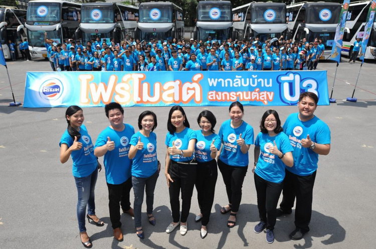 แต่เราพบว่าในช่วงเทศกาลสงกรานต์ของทุกปี ความต้องการซื้อตั๋วโดยสารจะพุ่งสูงขึ้นมากจนไม่เพียงพอต่อความต้องการ ฉะนั้นตั๋วโดยสารจึงมีราคาแพงและหาซื้อยาก ผู้คนจำนวนไม่น้อยจึงไม่สามารถเดินทางกลับบ้านได้ ด้วยเหตุนี้จึงเป็นที่มาของแคมเปญ “โฟร์โมสต์ พากลับบ้าน สงกรานต์สุข” ที่จัดขึ้นตั้งแต่ปี 2558 เพื่อสนับสนุนให้ประชาชนที่เข้ามาทำงานในกรุงเทพฯ ได้เดินทางกลับถิ่นฐานบ้านเกิดในช่วงเทศกาลสงกรานต์ ด้วยการมอบตั๋วโดยสาร และผลิตภัณฑ์นมโฟร์โมสต์รสจืด แบบฟรีๆ และปีนี้ยังได้จัดทำวิดีโอชวนกลับบ้านในวันสงกรานต์