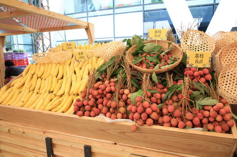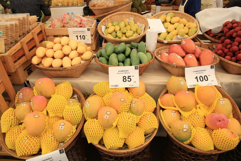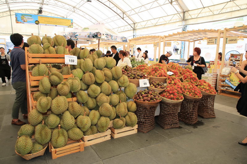 “โซนจำหน่ายผลไม้ Farmer’s Market มีสินค้าไฮไลท์ อาทิ ทุเรียน อีหนักจากจังหวัดระยอง ที่หารับประทานยากมีเพียง 300 ผลเท่านั้น ทุเรียนชะนีเกาะช้าง ต๊อกป๊อกกีทุเรียน บิงซูทุเรียน มังคุดอบกรอบ มาการองทุเรียน ขนมเปี๊ยะทุเรียน เป็นต้น รวมสินค้าที่จำหน่ายในงานทั้ง 2 โซน ร่วม 300 รายการ
