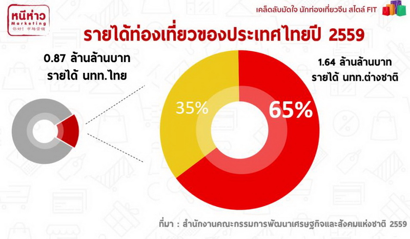 ทุกวันนี้ “ภาคการท่องเที่ยว” กลายเป็นอุตสาหกรรมหลักที่สร้างรายได้ให้แก่ประเทศไทยเพิ่มขึ้นทุกปี โดยเฉพาะตลาดนักท่องเที่ยวต่างชาติ ที่เติบโตทั้งในเชิงจำนวน และรายได้อย่างชัดเจน สะท้อนได้จาก GDP ของประเทศไทย ปี 2559 อยู่ที่ 14.36 ล้านล้านบาท โดยรายได้ภาคการท่องเที่ยว คิดเป็นสัดส่วน 17% ของ GDP โดยรวม หรืออยู่ที่ 2.51 ล้านล้านบาท ซึ่งรายได้ส่วนใหญ่มาจากนักท่องเที่ยวชาวต่างชาติ สูงถึง 65% หรืออยู่ที่ 1.64 ล้านล้านบาท