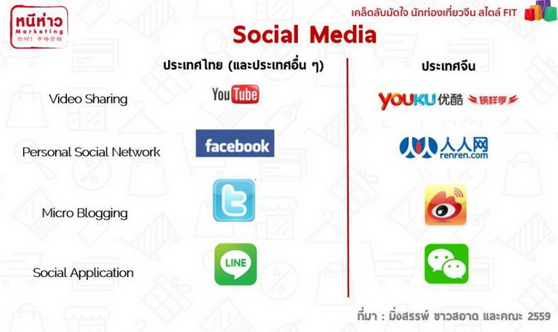 แต่ในประเทศจีน มีสื่อสังคมออนไลน์ของตัวเอง ดังนั้นผู้ประกอบการไทย ที่ต้องการเจาะตลาดนักท่องเที่ยวจีน ควรเรียนรู้ Social Media ของคนจีน