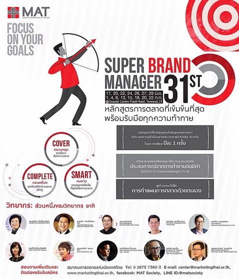 ดูรายละเอียดเพิ่มเติม พร้อมสมัครได้เลย ที่ http://www.marketingthai.or.th/super-brand-manager-31st/