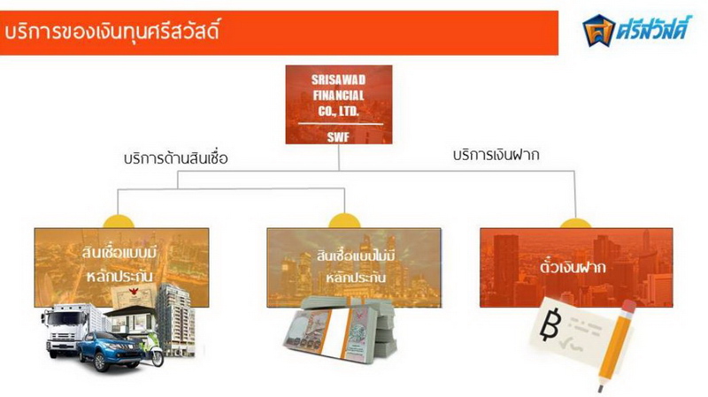 – ความครบวงจรของผลิตภัณฑ์ทางการเงิน ทั้งสินเชื่อแบบมีหลักประกัน เน้นไปที่กลุ่มลูกค้ารายย่อย, กลุ่มลูกค้าธุรกิจขนาดเล็ก, กลุ่มลูกค้าธุรกิจขนาดกลาง และแบบไม่มีหลักประกัน หรือสินเชื่อส่วนบุคคล รวมทั้งมีบริการเงินฝาก นำเสนอในรูปแบบตั๋วเงินฝาก ซึ่งจะดำเนินการที่สำนักงานของ บมจ.เงินทุนศรีสวัสดิ์ ถนนสาทรเท่านั้น ซึ่งปัจจุบันมียอดเงินฝาก 3,000 ล้านบาท มีทั้งแบบระยะสั้น และระยะยาว