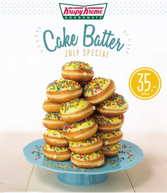 คริสปี้ ครีม ท้าประลองความสนุกกับโดนัทสูตรลิขสิทธิ์อันดับ 1 ที่ครองใจคนทั่วโลก ด้วย คริสปี้ ครีม เค้ก แบทเทอร์ (Krispy Kreme Cake Batter) โดนัทเนียนนุ่ม สอดไส้ครีมบัทเทอร์ชีสหอมละมุน พร้อมเคลือบด้วยไวท์ช็อคโกแลต และเพิ่มสีสันความอร่อยด้วยคอนเฟทตี้ ในราคาเพียงชิ้นละ 35 บาท (ราคาดังกล่าวยกเว้นสาขาสนามบินสุวรรณภูมิ และสนามบินดอนเมือง) ตั้งแต่วันนี้ – 31 กรกฎาคม 2017 ณ ร้านคริสปี้ ครีม ทั้ง 27 สาขาใกล้บ้านคุณ