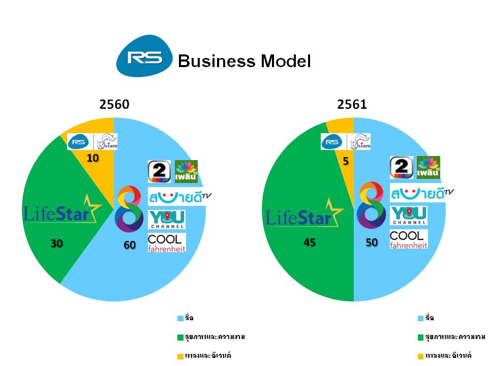 โดยคาดการณ์ว่า การเติบโตอย่างก้าวกระโดดต่อเนื่องของธุรกิจสุขภาพและความงาม จะทำให้สัดส่วนรายได้ขึ้นมาใกล้เคียงกับธุรกิจสื่อภายในปี 2561 กลายเป็นธุรกิจหลักของกลุ่มอาร์เอสอย่างสมบูรณ์แบบ ซึ่งขณะนี้เร่งวางแผนต่อยอดขยายธุรกิจสุขภาพและความงามเพื่อรองรับการเติบโตในทุกมิติ ทั้งการให้ความสำคัญกับ (product development ) หน่วยพัฒนาสินค้าใหม่ๆ เพื่อคัดเลือกสินค้าคุณภาพใหม่เพื่อตอบโจทย์ให้ตรงใจผู้บริโภค ตลอดจนเสริมศักยภาพของการใช้สื่อเพื่อสื่อสารถึงถลุ่มบูกค้าให้เกิดประสิทธิภาพยิ่งขึ้น และพัฒนาช่องการจำหน่าย Telesale ให้มีจำนวนและศักยภาพสอดคล้องกับการเติบโตของฐานลูกค้า รวมไปถึงขยายช่องทางใหม่ๆ อย่างโมเดิร์นเทรด โดยเฉพาะช่องทางออนไลน์ ซึ่งกำลังเป็นช่องทางที่รายได้เติบโตอย่างโดดเด่น ขณะเดียวกันกำลังหาพาร์ทเนอร์ขยายโอกาสทางธุรกิจไปกลุ่มประเทศ CLMV โดยกำลังเจรจากับพันธมิตรท้องถิ่นที่ประเทศเมียนมาร์ เพื่อร่วมขยายตลาดด้วยกัน คาดว่าจะชัดเจนภายในสิ้นปีนี้และเห็นการดำเนินงานในปี 2561