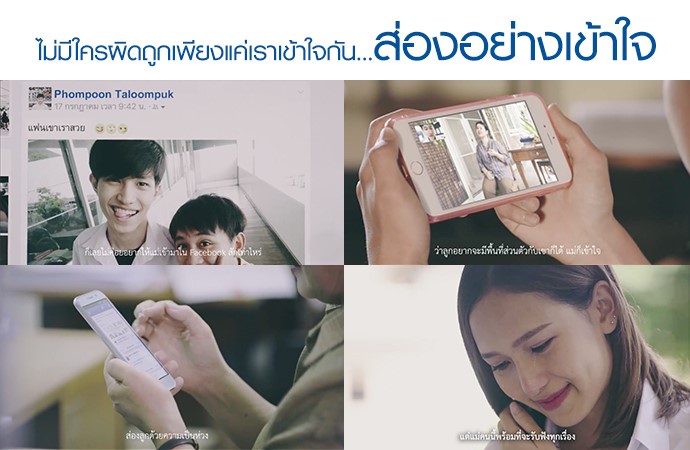 พอดีกับว่าเอเจนซี่นำตรงนี้มาเสนอและเราก็เห็นด้วยว่าเป็นประเด็นที่ดี ยิ่งส่วนตัวแล้วเราเองก็เป็นคุณแม่ที่มีลูกวัยรุ่นเหมือนกันก็ยิ่งรู้สึกว่าโดนค่ะ (หัวเราะ) เราอยากเห็นแม่ลูกเข้าใจพื้นที่โซเชียลของกันและกันมากขึ้น โดยไม่ได้ชี้นิ้วว่าใครถูกหรือผิด บางทีเราก็สนใจความรู้สึกของคนอื่นในโซเชียลจนลืมความรู้สึกของคนใกล้ตัวในชีวิตจริงๆ ด้วยหรือเปล่า