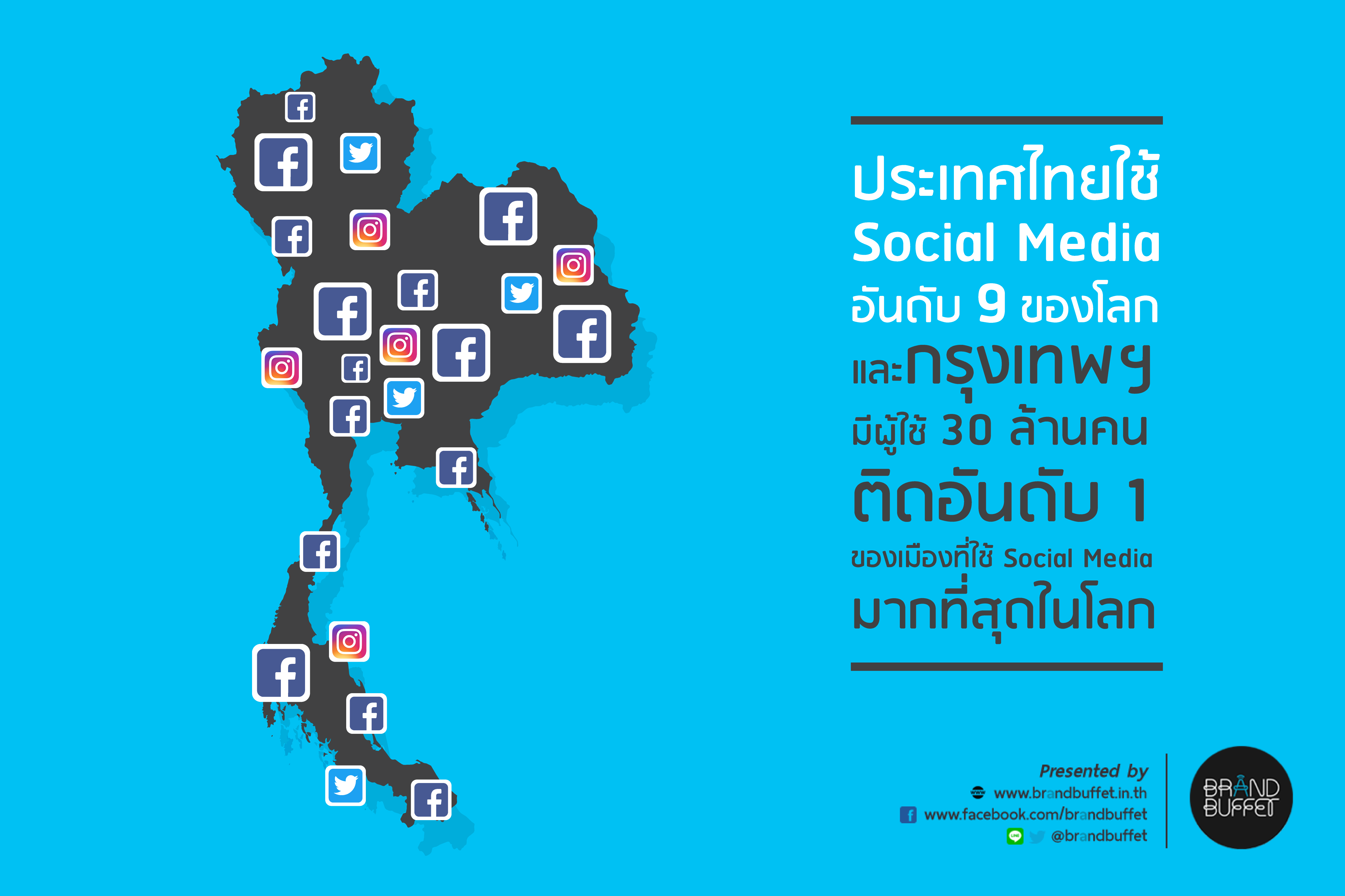 สะท้อนได้จากสถิติประเทศไทยมียอดผู้ใช้งาน Facebook ติดอันดับ 9 ของโลก ด้วยจำนวน 47,000,000 ราย หรือคิดเป็น 71% ของจำนวนประชากรในประเทศ ในขณะที่ “Instagram” มีผู้ใช้งาน 11 ล้านราย ส่วน “Twitter” มีผู้ใช้ 9 ล้านราย