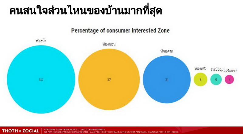 “Thoth Zocial” ผู้ให้บริการข้อมูล Social Media ครบวงจรให้กับภาคธุรกิจ ได้จัดงาน Analytics & Insights Forum 2017 พร้อมเผยข้อมูล Consumer Insight ในภาคอสังหาริมทรัพย์ โดยเป็นการเก็บข้อมูลจาก 5 ช่องทางหลัก คือ Facebook เก็บข้อมูลได้เฉพาะ Public Data เท่านั้น เช่น จำนวนแฟนเพจ โพสต์บนเพจ ช่วงเวลาของการโพสต์ ยอด Like, Share, Comment รวมทั้ง Twitter, Instagram, YouTube และเว็บบอร์ด เช่น Pantip จากนั้นนำข้อมูลมาวิเคราะห์ และตีความออกมาเป็นฐานข้อมูลที่จะมีประโยชน์ทั้งต่อ Developer และผู้บริโภค