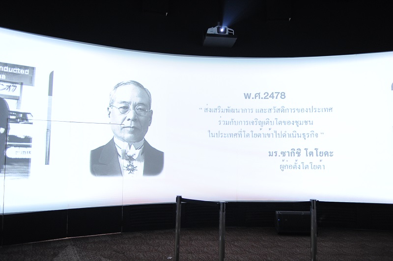 1. ปรัชญาของโตโยต้า (Toyota Philosophy) นำเสนอผ่านห้องจัดแสดง ในรูปแบบวิดีโอ 360 ที่ผู้ชมจะสัมผัสจิตวิญญาณาของแบรนด์ตั้งแต่ผู้ก่อตั้ง ไล่เรียงมาจนถึงปัจจุบัน กระทั่งการดำเนินงานในประเทศไทย