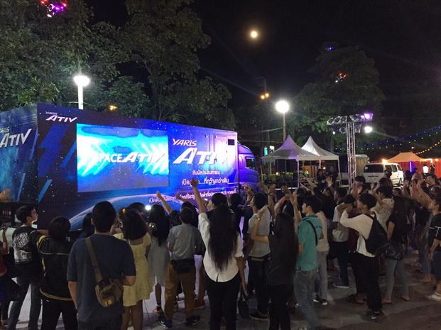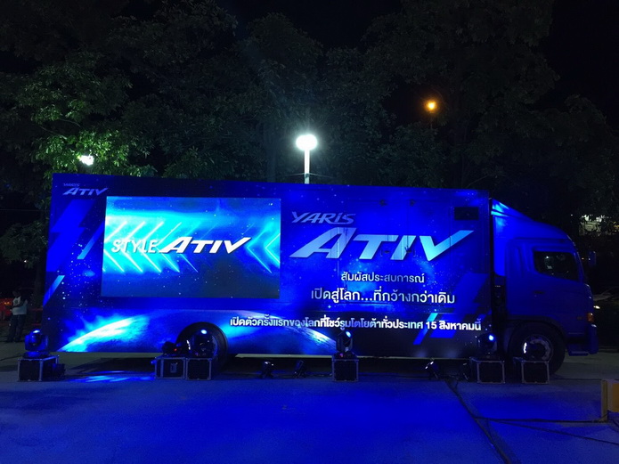 ปล่อยทีเซอร์เรียกกระแสและความสนใจ มาตั้งแต่วันที่ 5 สิงหาคมที่ผ่านมา สำหรับ Yaris ATIV (ยาริส เอทีฟ) สมาร์ทซีดานใหม่ จากโตโยต้า พร้อมกับสโลแกน “Yaris ATIV ครั้งแรกของโลก กับสมาร์ทซีดานที่ตอบทุกไลฟ์สไตล์คุณ” ซึ่งเพียงแค่ทีเซอร์เปิดตัวก็ถือว่าได้รับการตอบรับเป็นอย่างดี พร้อมกับการคาดเดาต่างๆ นานาจากผู้ที่ติดตามข่าวสารเกี่ยวกับรูปลักษณ์ที่แท้จริงของ Yaris ATIV ล่าสุด โตโยต้าออกมาสร้างเซอร์ไพรส์พร้อมเรียกกระแสกันต่อ เนื่องอีกรอบก่อนจะถึงวันเปิดตัว ด้วยการนำขบวน “Yaris ATIV” Truck วิ่งรอบกรุง เพื่อเผยโฉมบางส่วนเป็นการเรียกน้ำย่อย ภายใต้แนวคิด“Yaris ATIV สัมผัสประสบการณ์ เปิดสู่โลก…ที่กว้างกว่าเดิม” โดยสื่อสารผ่านการแสดงบินโดรนผาดโผน ผสานกับเทคโนโลยี 3D Mapping Projection อวดโฉมบางส่วนของ Yaris ATIV ถือว่าสร้าง ความตื่นตาตื่นใจให้กับผู้คนที่ผ่านไปมาและเข้าถึงกลุ่มเป้าหมายได้ อย่างมีสไตล์ และตอบไลฟ์สไตล์คนเมืองที่คิดนอกกรอบได้เป็นอย่างดี