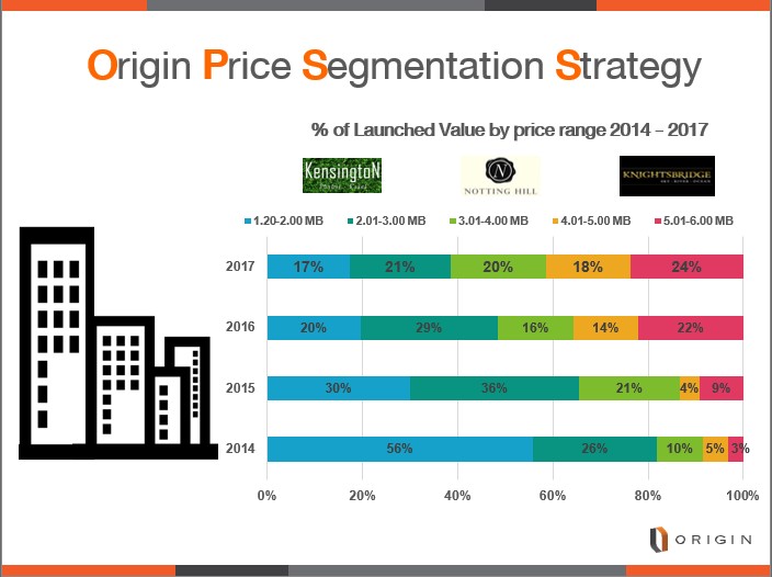 ทั้งนี้ ไนท์บริดจ์ ถือเป็นอีกแบรนด์เรือธง ที่ออริจิ้นปลุกปั้นให้เข้ามาแข่งขันกับตลาดคอนโดฯพรีเมียม ด้วยการตกแต่งสไตล์ Luxurious & Modern  แต่ยังคงระดับราคาที่เข้าถึงได้ (Affordable Price) ตลอดจนเป็นสร้างแบรนด์ ให้เป็นที่รู้จัก ทั้งนี้ก็เป็นหนึ่งในกลยุทธ์ชองบริษัท ในการ กระจายความเสี่ยงการลงทุนและการรับรู้รายได้ในพอร์ตโฟลิโอของบริษัท ที่มีตั้งแต่คอนโดฯระดับราคาคุ้มค่าเจาะตลาดแมสจนถึงกลุ่มไฮเอนด์  สร้างความพึงพอใจและความเชื่อมั่นในแบรนด์ เกิดการบอกต่อ จนนำไปสู่การสร้างยอดขายและขยายมาร์เก็ตแชร์ หรือส่วนแบ่งทางการตลาดมากยิ่งขึ้น