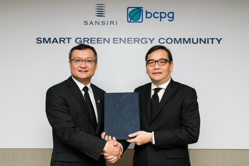 นายอุทัย อุทัยแสงสุข (ซ้าย) ประธานผู้บริหารสายงานปฏิบัติการ บริษัท แสนสิริ จำกัด (มหาชน) และ นายบัณฑิต (ขวา) สะเพียรชัย กรรมการผู้จัดการใหญ่ บริษัท บีซีพีจี จำกัด (มหาชน) ผู้ประกอบธุรกิจผลิตไฟฟ้าจากพลังงานสะอาดที่เป็นมิตรต่อสิ่งแวดล้อมทั้งในประเทศไทยและต่างประเทศ ได้เล็งเห็นถึงศักยภาพในการพัฒนาธุรกิจอย่างยั่งยืนควบคู่ไปกับการใช้พลังงานสะอาดเพื่ออนุรักษ์สิ่งแวดล้อมและการพัฒนาสังคม จึงได้ลงนามบันทึกข้อตกลงความร่วมมือ (MOU) เปิดตัวโฉมใหม่การผลิตและใช้ไฟฟ้าจากพลังงานทดแทนครั้งแรกในไทย