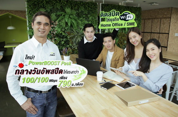 ส่งแพ็กเกจใหม่เขย่าตลาดบรอดแบนด์อีกครั้ง เพื่อช่วงชิงส่วนแบ่งตลาดจากลูกค้ากลุ่มธุรกิจขนาดย่อม ซึ่งถือเป็นครั้งแรกในการขยายฐานลูกค้าไปสู่กลุ่ม Business Segment กับ AIS Fibre PowerBOOST Package แพ็กเกจที่ออกแบบมาเพื่อลูกค้าที่ทำธุรกิจ Home Office และ SME โดยเฉพาะ ด้วยการอัพสปีดเน็ตช่วงกลางวัน ตั้งแต่ 6 โมงเช้าถึง 6 โมงเย็น (Office Hour) เพื่อให้ใช้ทำงานได้เต็มประสิทธิภาพ เหมาะสำหรับธุรกิจที่ต้องการแยกการใช้งานอินเทอร์เน็ตให้พนักงาน โดยไม่รบกวนการใช้งานอินเทอร์เน็ตหลักขององค์กร รวมทั้งธุรกิจที่ต้องการนำอินเทอร์เน็ตไปให้ใช้บริการ WiFi ฟรีสำหรับลูกค้า เช่น ร้านกาแฟ, Co-Working Space