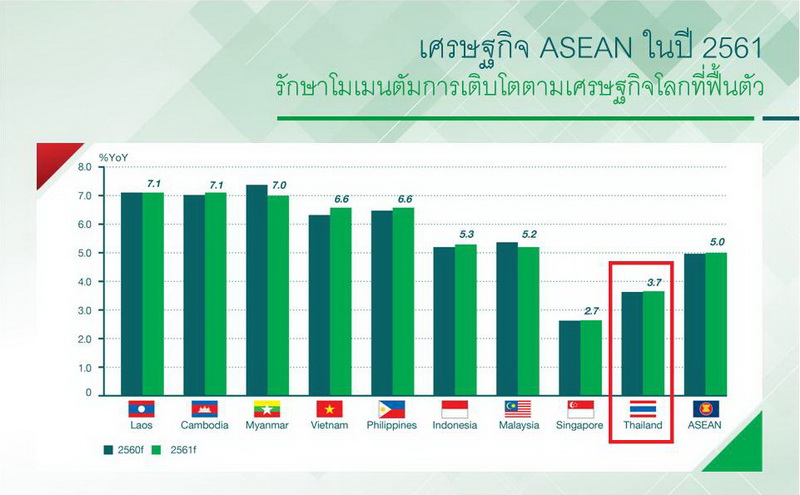 ส่วนตัวแปรที่กดดันภาพรวมเศรษฐกิจ คือ กำลังซื้อของประชาชน เป็นผลมาจากปัญหาหนี้ครัวเรือนในระดับสูง และรายได้เกษตรกรมีโอกาสชะลอตัว แต่ด้วยภาพรวมการเติบโตทางเศรษฐกิจของไทย ที่แม้จะยังประคองการเติบโตไว้ได้ แต่ถ้าเทียบกับประเทศในอาเซียน ยังถือว่าเศรษฐกิจประเทศไทย โตต่ำกว่าหลายประเทศ จึงเป็นเหตุผลที่ธุรกิจไทยยังคงให้ความสนใจขยายธุรกิจ และการลงทุนไปยังประเทศในอาเซียนต่อเนื่อง