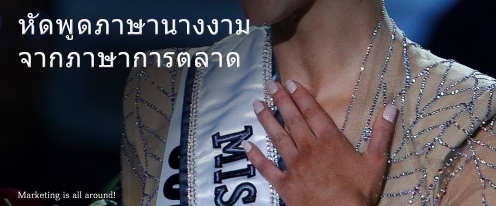 ในทางการตลาด การเขียนข้อความสื่อสารทางการตลาด งานโฆษณาหรือการเขียนสโลแกน ต้องอาศัยทักษะและแนวคิดในการเขียนที่ไม่แตกต่างไปจากการฝึกตอบคำถามนางงาม ท่านที่อยากจะฝึกตอบคำถามนางงาม ลองใช้ลำดับความคิดในการตอบแบบนี้ดูก็ได้