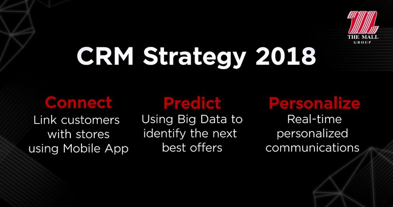 นอกจากการยกระดับ CRM ขยายไปสู่แพลตฟอร์ม “Mobile Application” แล้ว ขณะเดียวกัน “เดอะมอลล์ ช้อปปิ้งเซ็นเตอร์” ยังได้กำหนด 6 กลยุทธ์หลักที่จะขับเคลื่อนการเติบโตในปีหน้า ประกอบด้วย