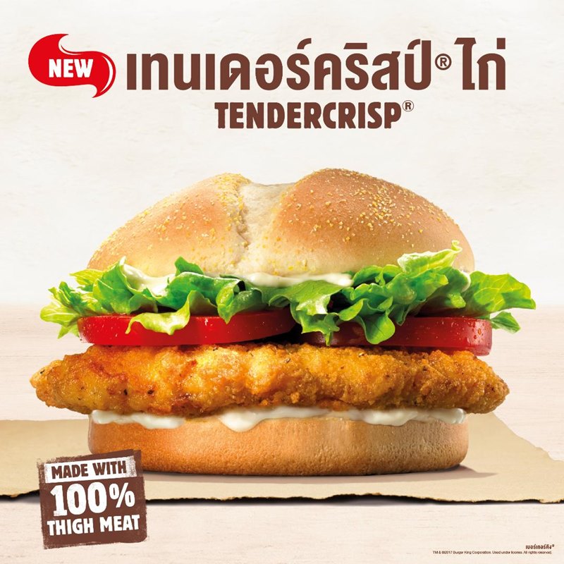 นอกจากนี้ เบอร์เกอร์คิงยังเพิ่มเติมเมนูใหม่อย่าง เทนเดอร์คริสป์ไก่ ที่คัดสรรเนื้อไก่คุณภาพดีนำไปทอดจนหอมกรุ่น อร่อยกรุบกรอบ พร้อมด้วยอีกหนึ่งเมนูพิเศษ คือ ไก่คั่วเกลือ รสชาติถูกปากคนไทย เสิร์ฟพร้อมข้าวเหนียวออร์แกนิค สานต่อนโยบายมุ่งมั่นในการสร้างสรรค์เมนูอาหารและเครื่องดื่มใหม่ๆ เพื่อตอบรับความต้องการของผู้บริโภคอย่างต่อเนื่อง โดยให้ความสำคัญกับการเลือกวัตถุดิบที่มีคุณภาพสดใหม่ มีเอกลักษณ์โดดเด่นเฉพาะตัว ที่ทำให้รสชาติอร่อยลงตัว ในราคาที่จับต้องได้ ซึ่งเป็นจุดแข็งสำคัญของเบอร์เกอร์คิง และทำให้ผู้บริโภคให้การตอบรับแบรนด์เบอร์เกอร์คิงเป็นอย่างดีเสมอมา จนทำให้ธุรกิจสามารถเติบโตเพิ่มขึ้นได้อย่างต่อเนื่อง สอดคล้องกับภาพรวมของตลาดเบอร์เกอร์ในช่วงที่ผ่านมาที่ยังคงเติบโตได้เช่นเดียวกัน