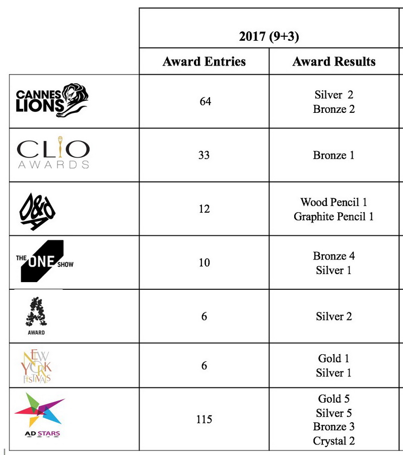 และในปีนี้เอง TBWA\Group Thailand ยังคว้ารางวัล Agency of The Year จากสมาคมผู้กำกับศิลป์บางกอก หรือ B.A.D Awards รวมไปถึงรางวัลต่าง ๆ ได้แก่