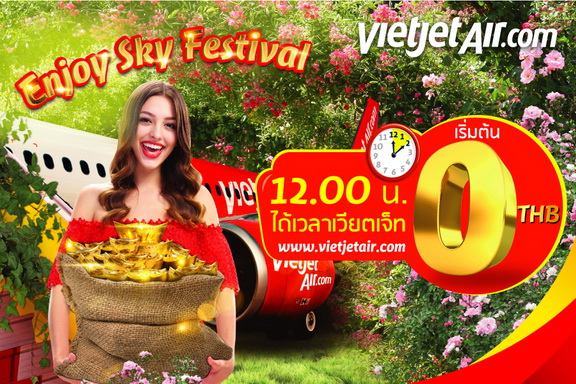 เวียตเจ็ทจัดรายการคืนกำไรแก่ผู้บริโภคอย่างต่อเนื่องกับ โปรโมชั่น “Enjoy Sky Festival” เปิดจองบัตรโดยสารราคาเริ่มต้น 0 บาท (ไม่รวมภาษีและค่าบริการ) จำนวน 500,000 ใบ จองได้ตั้งแต่วันที่ 24 – 26 มกราคม 2561 ในช่วงที่กำหนด ผ่านทางเว็บไซต์ www.vietjetair.com สำหรับใช้บินเส้นทางทั่วไทย ระหว่างสุวรรณภูมิ – เชียงใหม่/ ภูเก็ต/ เชียงราย บินตรงระหว่างภูเก็ต-เชียงราย และทั้ง 6 เส้นทาง เชื่อมไทย-เวียดนาม ได้แก่ กรุงเทพฯ (สุวรรณภูมิ) – โฮจิมินห์ซิตี้/ ฮานอย/ ไฮฟอง/ ดาลัด จากเชียงใหม่ – โฮจิมินห์ซิตี้ และจากภูเก็ต – โฮจิมินห์ซิตี้ เดินทางได้ตั้งแต่วันที่ 1 มีนาคม – 31 ธันวาคม 2561 (ไม่รวมวันหยุดนักขัตฤกษ์และตารางบินเป็นไปตามที่กำหนด) นอกจากนี้ยังรวมถึงเส้นทางจากเวียดนามสู่ โซล ปูซาน (เกาหลีใต้) / ฮ่องกง / เกาสง ไทเป ไทจง ไถหนัน (ไต้หวัน) / สิงคโปร์ / กัวลาลัมเปอร์ (มาเลเซีย) / ย่างกุ้ง (เมียนมาร์) / พนมเปญ เสียมราฐ (กัมพูชา)