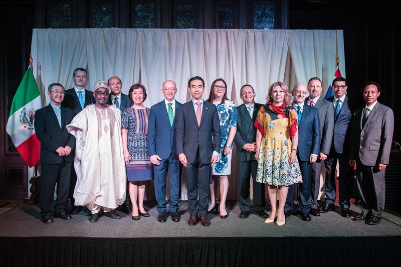 สถานเอกอัครราชทูตเม็กซิโกประจำประเทศไทย โดย นายไฆเม บีร์กิลิโอ นัวลาร์ต ซานเชซ (H.E. Mr. Jaime Virgilio Nualart Sánchez) (ที่ 6 จากซ้าย) เอกอัครราชทูตสหรัฐเม็กซิโกประจำประเทศไทย ให้เกียรติเป็นประธาน ในพิธีเลี้ยงฉลองโอกาสการเข้ารับตำแหน่งกงสุลกิตติมศักดิ์สหรัฐเม็กซิโก ประจำจังหวัดระยอง แก่ นายอัศวิน เตชะเจริญวิกุล (ที่ 7 จากซ้าย) กงสุลกิตติมศักดิ์สหรัฐเม็กซิโกประจำจังหวัดระยองคนใหม่ โดยภายในงานยังได้รับเกียรติจาก นางนันทนา ศิวะเกื้อ (ที่ 5 จากซ้าย) อธิบดีกรมอเมริกาและแปซิฟิกใต้ นายอันเดลโฟ โฆเซ การ์เซีย กอนซาเลซ (H.E. Mr. Andelfo José García Gonzále) (ที่ 4 จากซ้าย) เอกอัครราชทูตสาธารณรัฐโคลอมเบียประจำประเทศไทย นางมาเรีย เดล การ์เมน มาร์ติเนซ อะโรเซเมนา (H.E. Mrs. María del Carmen Martínez Arosemena) (ที่ 5 จากขวา) เอกอัครราชทูตและกงสุลใหญ่สาธารณรัฐปานามาประจำประเทศไทย นายเฟรนันโด ฆูลิโอ อันโตนิโอ กิโรส กัมโปส (H.E. Mr. Fernando Julio Antonio Quirós Campos) (ที่ 6 จากขวา)เอกอัครราชทูตสาธารณรัฐเปรูประจำประเทศไทย นายคริสเตียน เรเรน บาร์เก็ตโต (H.E. Mr. Christian Rehren Bargetto) (ที่ 4 จากขวา) เอกอัครราชทูตสาธารณรัฐชิลีประจำประเทศไทย