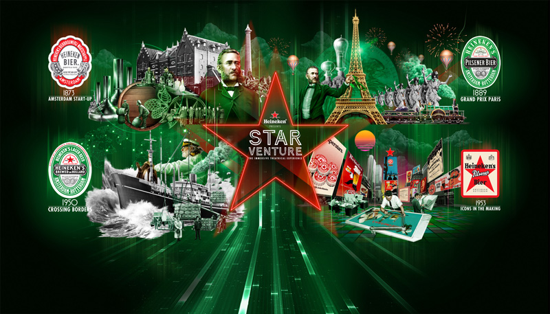 นอกจากจะสื่อสารผ่านแพ็กเกจจิ้งซึ่งเป็น Touch Point ที่ใกล้ตัวผู้บริโภคมากที่สุดอย่างหนึ่งแล้ว ไฮเนเก้นยังมีแพลนถ่ายทอดเรื่องราวเบื้องหลังของแต่ละฉลากผ่านการแสดงละครบรอดเวย์สุดอลังการ Heineken® Presents STAR VENTURE The Immersive Theatrical Experience ที่จำลองเหตุการณ์อ้างอิงจากประวัติศาสตร์ทั้ง 4 ยุคเพื่อให้เหล่าสาวกไฮเนเก้นทุกคนได้เปิดประสาทสัมผัสและประสบการณ์ในการเข้าไปทำความรู้จักกับแบรนด์ไฮเนเก้นกันอย่างสมจริงยิ่งกว่าเดิม พร้อมจัดเต็มกับเทคนิคต่างๆ ทั้งนักแสดงมืออาชีพ และแสง สี เสียงสุดอลังการกว่า 1 ชั่วโมงเต็มผ่านรูปแบบของเทคโนโลยีและมัลติมีเดียแบบอินเตอร์แอคทีฟ ซึ่งถือเป็นครั้งแรกในประเทศไทยที่ผู้ชมสามารถมีส่วนร่วมกับการแสดงได้ ทั้งหมดเป็นส่วนหนึ่งของการสร้างประสบการณ์ Open Your World ที่จะมายกระดับประสบการณ์ของทุกคนไปอีกขั้นตามความคาดหวังของแบรนด์ระดับโลกอย่างไฮเนเก้น ( Heineken ® ) สำหรับสาวกดาวแดงที่อยากจะร่วมกิจกรรมสนุกๆ จากไฮเนเก้นสามารถเกาะติดรายละเอียดเพิ่มเติมได้ที่ www.facebook.com/Heineken และ instagram @heineken_th