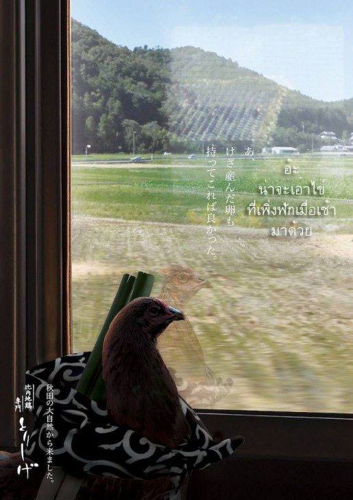 ล่าสุดชาวเน็ตนับหมื่นก็แห่แชร์ภาพจากเพจ Yabai Japan เรื่องเด็ดๆที่ญี่ปุ่น แคปชั่นว่า “โปสเตอร์ของร้านไก่ย่างญี่ปุ่นทำเอาคนดูซึ้งกันหมด?” ซึ่งเป็นโปสเตอร์ร้านไก่ย่างของญี่ปุ่น 4 ภาพ ที่ไม่มี food shot ไก่ น่ากินชวนน้ำลายไหลเหมือนร้านทั่วไป แต่เล่าเรื่องการเดินทางของไก่ตัวเป็นๆตัวหนึ่ง (ที่ก็ไม่รู้ทำไมต้องสะพายต้นหอม) เริ่มต้นการเดินทางจากฟาร์ม – นั่งรถไฟ – เจอสุนัขเจ้าถิ่น – จนถึงร้านไก่ย่าง อย่างสวัสดิภาพ … 4 ภาพชุดจบบริบูรณ์ มีความเป็นญี่ปุ๊นญี่ปุ่นโดดเด่นเรื่อง Storytelling เล่าถึงความตั้งใจของเจ้าไก่ออกมาได้ดีเหลือเกิน