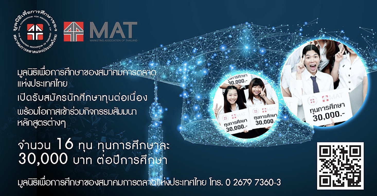 มูลนิธิเพื่อการศึกษาของสมาคมการตลาดแห่งประเทศไทย  เปิดรับสมัคร นักศึกษาทุนต่อเนื่อง ประจำปี 2561 จำนวน 16 ทุนปีละ 30,000 บาท จนจบการศึกษา (ภายใน 4 ปี) พร้อมโอกาสเข้าร่วมกิจกรรมสัมมนาหลักสูตรต่างๆ ฟรี !