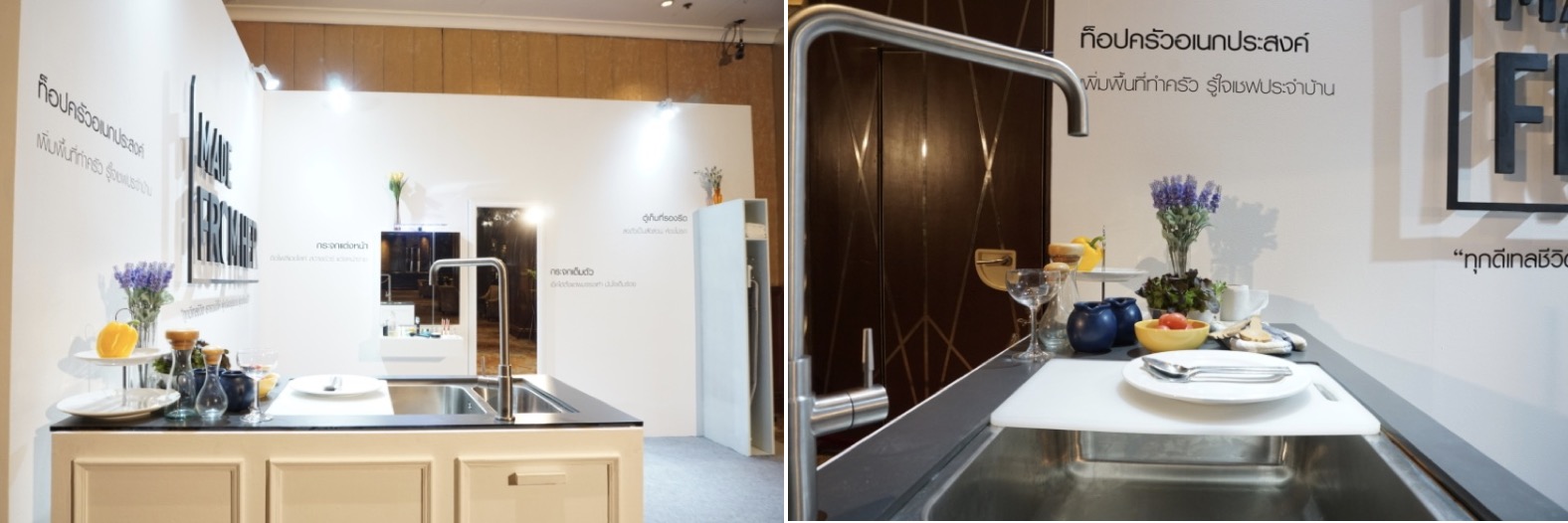 เคานท์เตอร์ครัวที่ปรับเปลี่ยนได้หลายแบบ ประหยัดพื้นที่และมีฐานตั้ง Tablet ไว้ให้ดูสูตรอาหาร