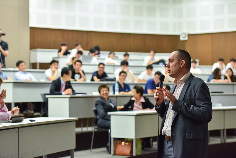 อันตวน บาร์เตส ประธาน บริษัท นิสสัน มอเตอร์ (ประเทศไทย) จำกัด กล่าวบรรยายพิเศษในหัวข้อ “วิสัยทัศน์ยานยนต์แห่งอนาคตของนิสสัน” ให้แก่นิสิตจำนวนกว่า 80 คน จากคณะวิศวกรรมศาสตร์ จุฬาลงกรณ์มหาวิทยาลัย