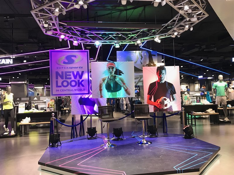 “ซูเปอร์สปอร์ตโฉมใหม่จะแบ่งโซนสินค้าสำหรับผู้ชายและผู้หญิงอย่างชัดเจน โดยสินค้าของผู้หญิงจะอยู่ในโซนสีชมพูทางด้านซ้ายของร้าน ส่วนของผู้ชายจะเป็นโซนสีฟ้าทางด้านขวามือ และในแต่ละโซนจะแยกหมวดหมู่สินค้าตาม Category สินค้าแต่ละประเภท เช่น Run, Golf, Exercise หรือบางหมวดที่อาจจะมีอยู่แค่โซนเดียว เช่น สินค้าในกลุ่มฟุตบอลที่จะอยู่ในโซนผู้ชาย โดยในแต่ละหมวดก็จะรวบรวมสินค้าประเภทเดียวกันจากหลายๆ แบรนด์มาไว้ด้วยกัน เพื่อให้ลูกค้าเปรียบเทียบกันได้ตามต้องการทั้งรูปแบบ ดีไซน์ หรือราคา จากที่ก่อนหน้านี้เคยจัดสินค้าในแบบ Shop in Shop ที่เน้นพรีเซ็นต์ผ่านความเป็นแบรนด์แต่ละแบรนด์ และจะรวบรวมสินค้าทุกๆ อย่างภายใต้แบรนด์เดียวกันมาไว้ด้วยกัน ซึ่งยังไม่ตอบโจทย์ประสบการณ์ในการช้อปปิ้งของลูกค้าได้มากนัก”