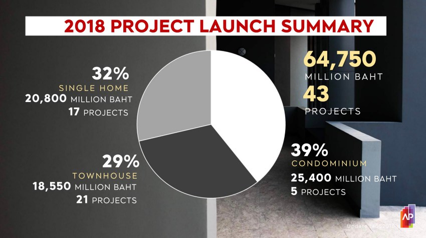 “หลังจากมีการปรับเพิ่มแผน ทำให้ ปี2561 นี้เป็นปีที่บริษัทฯ มีการเปิดตัวโครงการมากที่สุดตั้งแต่จัดตั้งบริษัทมา ซึ่งจากการปรับแผนทั้งปีเอพีจะเปิดตัวโครงการใหม่รวมทั้งสิ้น 43 โครงการมูลค่า 64,750 ล้านบาท แบ่งเป็นสินค้าแนวราบ 38 โครงการ มูลค่า 39,350ล้านบาท และคอนโดมิเนียม 5 โครงการ มูลค่า 25,400 ล้านบาท เปิดตัว ในครึ่งปีแรก จำนวน 8 โครงการ พร้อมเปิดตัวในครึ่งปีหลังจำนวน 35 โครงการ มูลค่า 54,380 ล้านบาท”