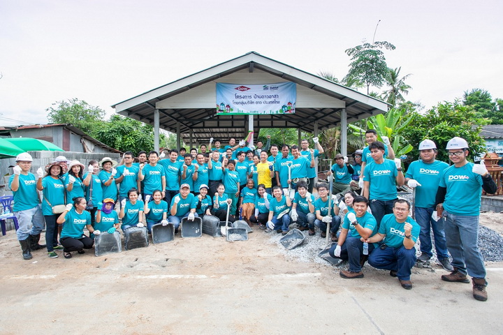 นายเดชา พาณิชยพิเชฐ ผู้อำนวยการโรงงาน กลุ่มบริษัท ดาว ประเทศไทย นำทีมพนักงานดาวอาสากว่า 60 คน ร่วมสร้างบ้านที่ปลอดภัย แข็งแรง และถูกสุขลักษณะ ให้กับครอบครัวของนางเลี่ยม แสวงหา ในชุมชนตากวน ตำบลมาบตาพุด จังหวัดระยอง ซึ่งเป็นเจ้าของบ้านดาวอาสาหลังที่ 36 โดยในงานได้รับเกียรติจาก นายถวิล โพธิบัวทอง นายกเทศมนตรีเมืองมาบตาพุด ร่วมพิธีเปิดกิจกรรมสร้างบ้านและแสดงความยินดีกับเจ้าของบ้านดาวอาสารายล่าสุด