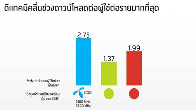 เป็นที่แน่ชัดแล้วว่า ดีแทค(DTAC) ประกาศไม่เข้าร่วมประมูลคลื่น1800 MHz หลังจากที่ ทรู(TRUE) ได้ แสดงความชัดเจนก่อนหน้านี้แล้วว่า จะไม่เข้าประมูล เนื่องจากมีคลื่นในมือรวมแล้วมากถึง 55 MHz สามารถรองรับลูกค้าในอนาคตได้อีกเท่าตัว สำหรับ ดีแทค เองก็เช่นกัน หลังจาก ได้