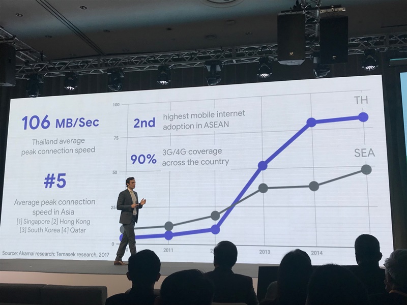 เบน คิง Country Director, Google ประเทศไทย กล่าวว่า เทคโนโลยีดิจิทัลมีศักยภาพในการเปลี่ยนแปลงโลกในหลายๆ ด้าน ช่วยเปิดโอกาสให้เกิดความเป็นไปได้ใหม่ๆ รวมทั้งช่วยให้ผู้คนสามารถเข้าถึงข้อมูลและเชื่อมต่อผู้คนเข้าหากันได้อย่างมีประสิทธิภาพ ขณะที่โอกาสในเชิงธุรกิจก็มีขนาดไม่น้อย โดยประเมินมูลค่าเศรษฐกิจดิจิทัลในตลาดเอเชียตะวันออกเฉียงใต้อยู่ที่ 2 แสนล้านเหรียญสหรัฐ ขณะที่มูลค่าในประเทศไทยอยู่ที่ราว 3.7 หมื่นล้านเหรียญสหรัฐ